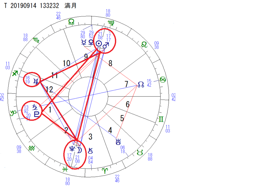 今回の魚座満月は、3ハウスと9ハウスで起こり、12ハウスの木星から刺激され