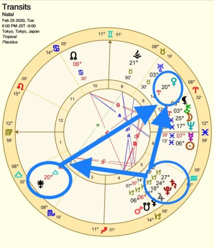 牡牛座金星が20°に入った途端に、天秤座20°のジュノとオポジション