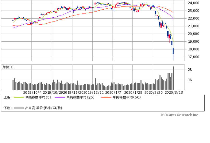 2万4448円だった株価は、あっという間に1万6690円まで一時的に下がりました。