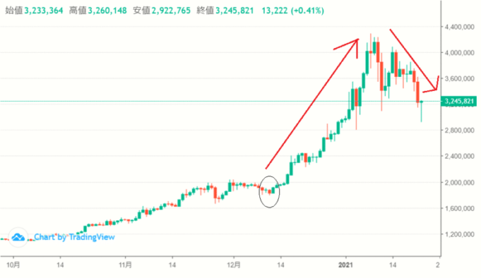 1月7日には40,000ドルを突破し、41,000ドルをつけた後