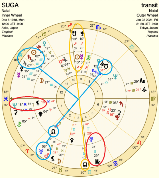 1/20時点の彼のホロスコープをトランジットと共に読みます。