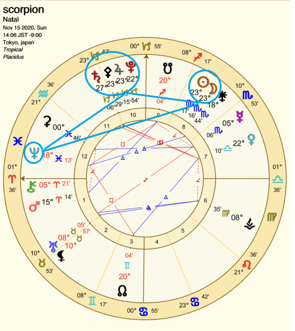 魚座海王星とはトライン、山羊座トリプルコンジャンクションもセクスタイルで