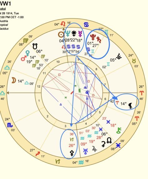 - 第一次世界大戦時のチャートと比較すると、土星と冥王星のコンジャンクションを中心にステリウム