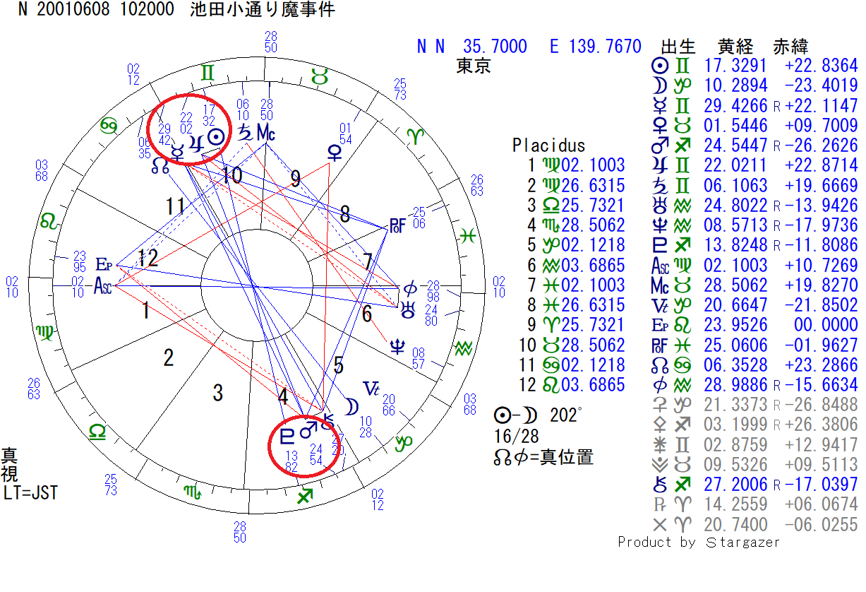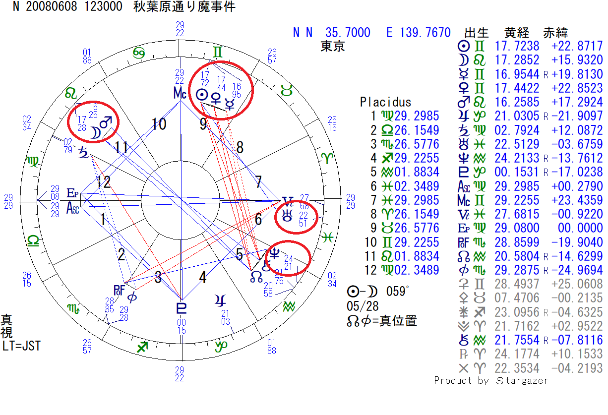 川崎、池田小、秋葉原通り魔事件のホロスコープ