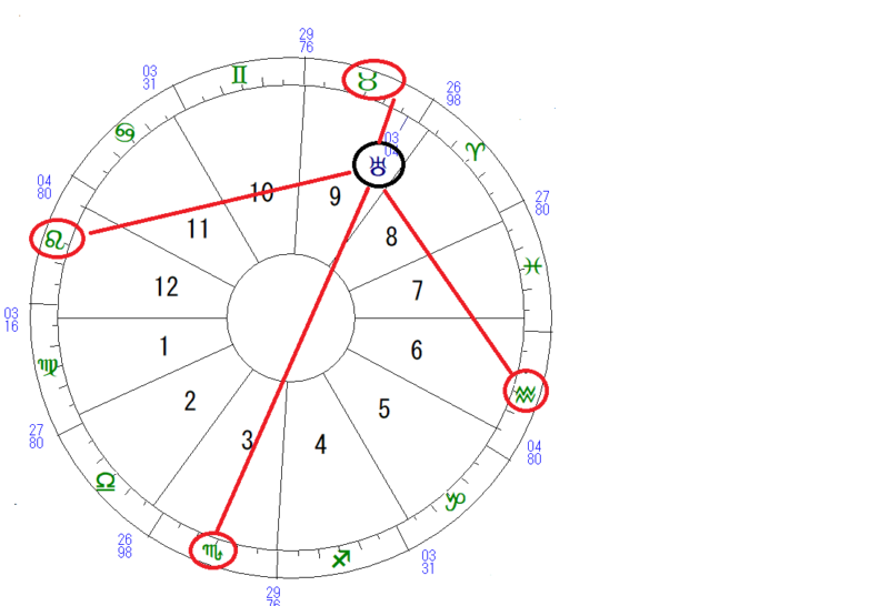 ハードなアスペクトを作る為、その影響を受けて人間関係や状況が変化しやすいのです。