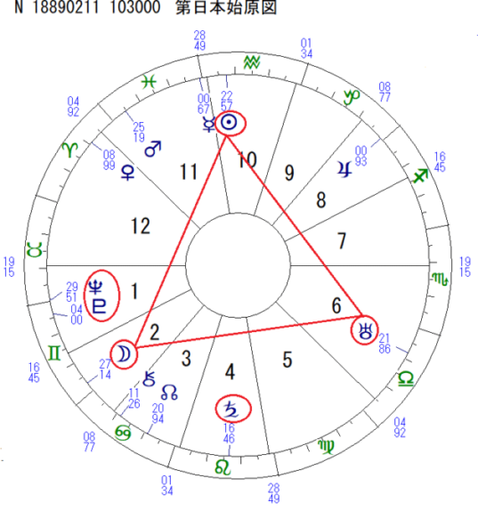 日本や首相を意味する太陽は10ハウス水瓶座 22°
