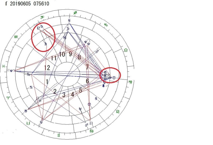ネイタルの冥王星に重なっている(下の赤丸で印した箇所)ので