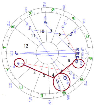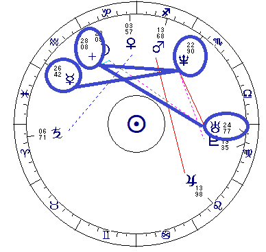 ※下記は、上のヘリオセントリックチャートと同じ人のジオセントリックチャートです。