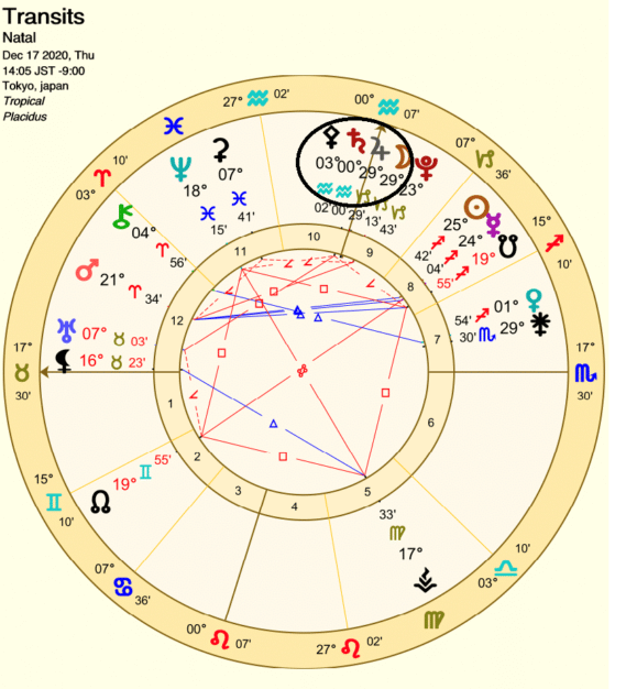 上のチャートは、土星が水瓶座に入ったばかりのものですが