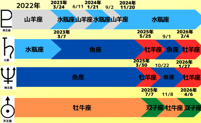 2023年3/24日に水瓶座一旦入り、6/11日には山羊座に戻ります。