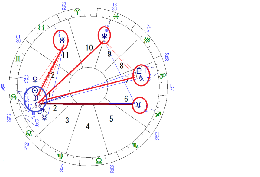 今回の新月にはノードだけでなく、 社会天体である土星と木星、外惑星の海王星、冥王星が関わってきます。